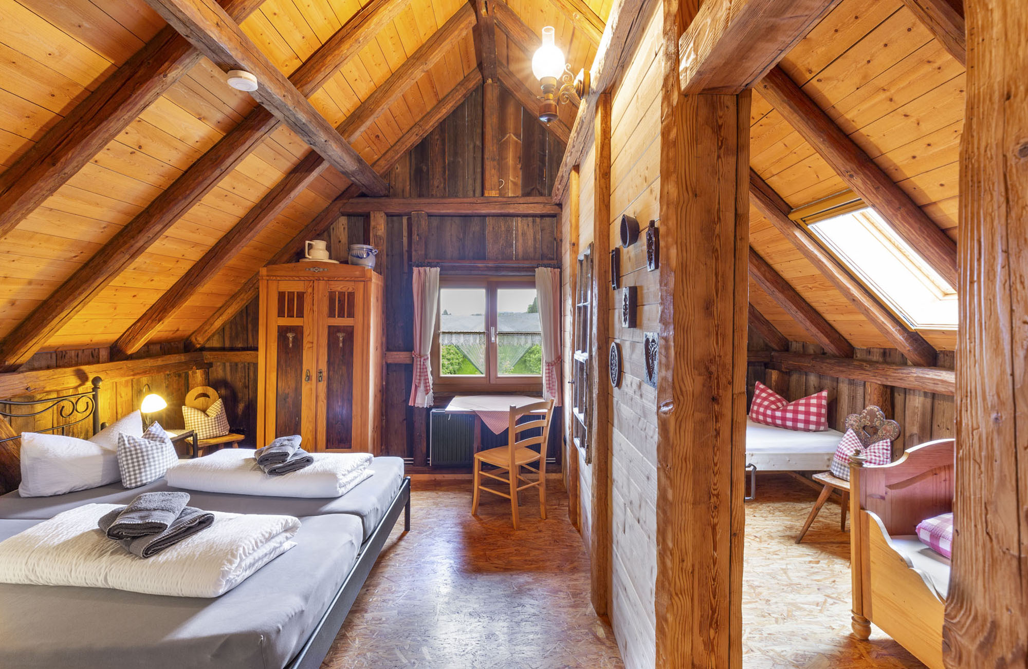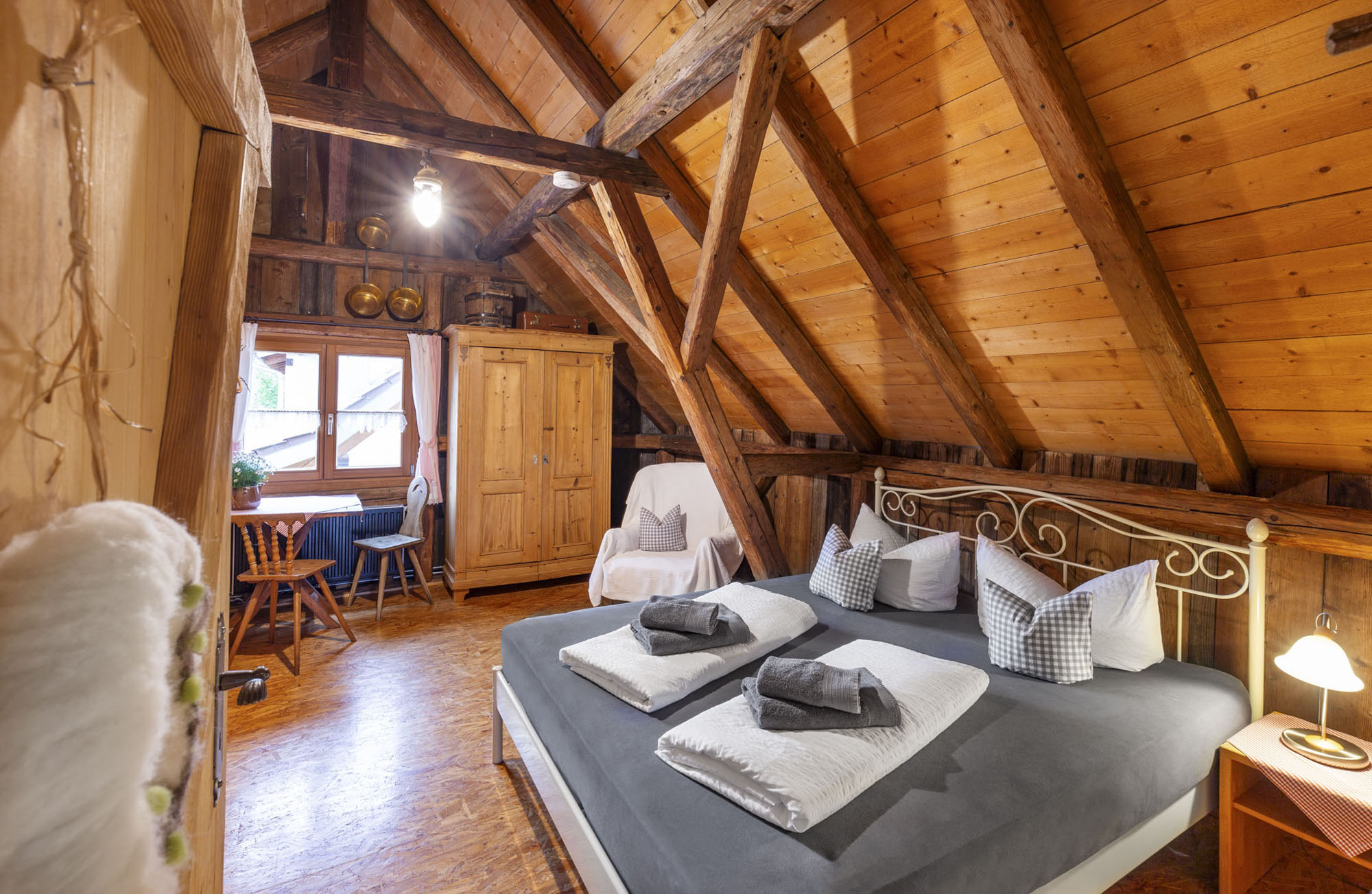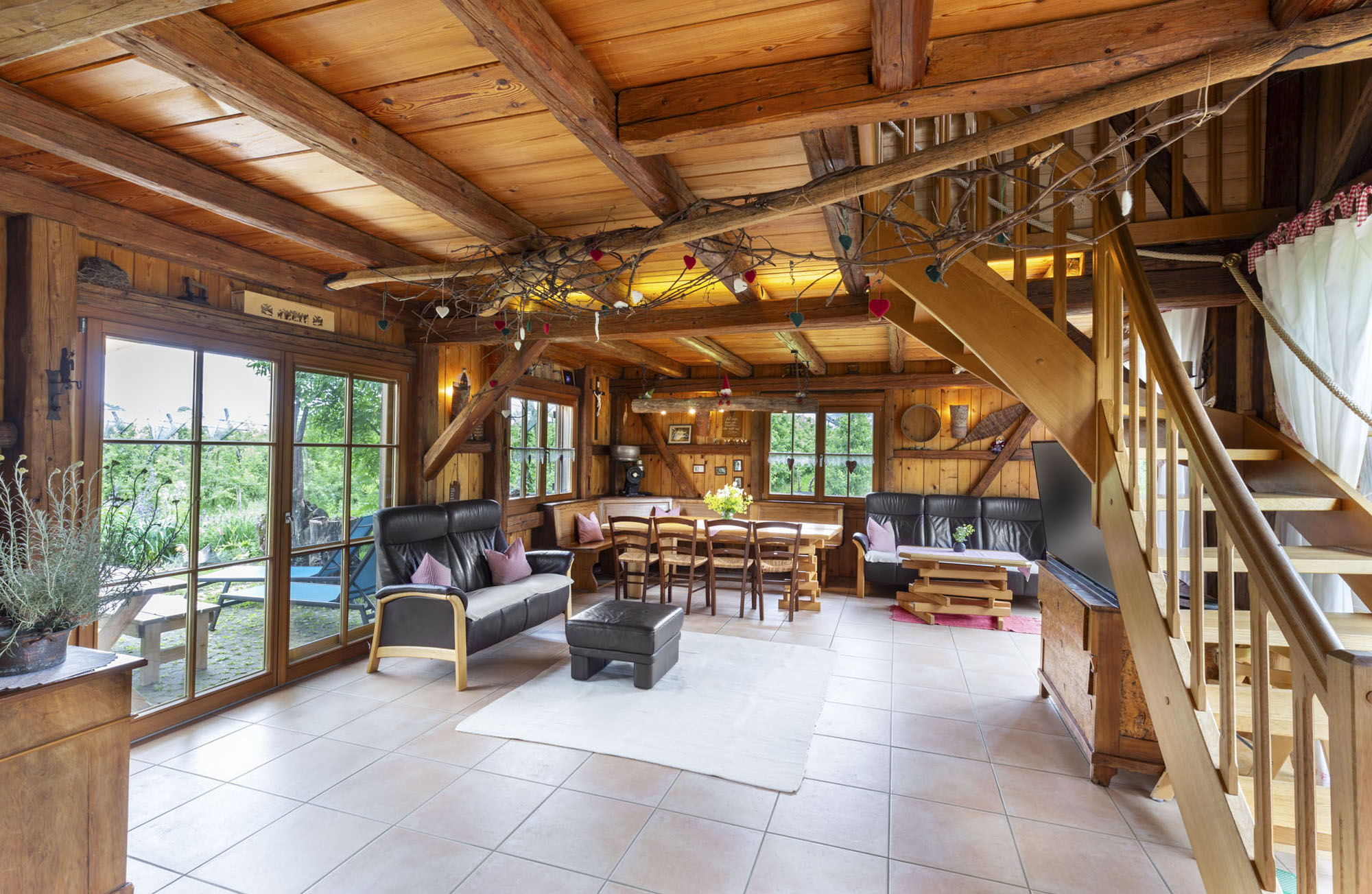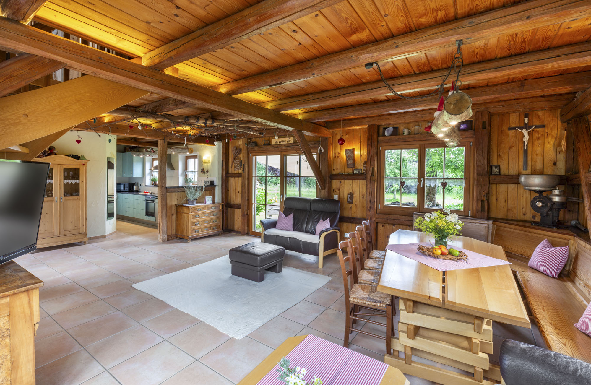 Hier gibt es viel Platz zum gemeinsamen Essen und Zusammensitzen. Das "Schöpfle" hat ca. 140m², steht neben dem Ferienhaus "Blumenstrauß" wo auch der Parkplatz für Ihr Auto ist. Ausgestattet mir Fußbodenheizung im EG, Heizkörper im DG und einer Glasfront zur Terrasse in den ehemaligen Toren sorgen für eine tolle Atmosphäre.