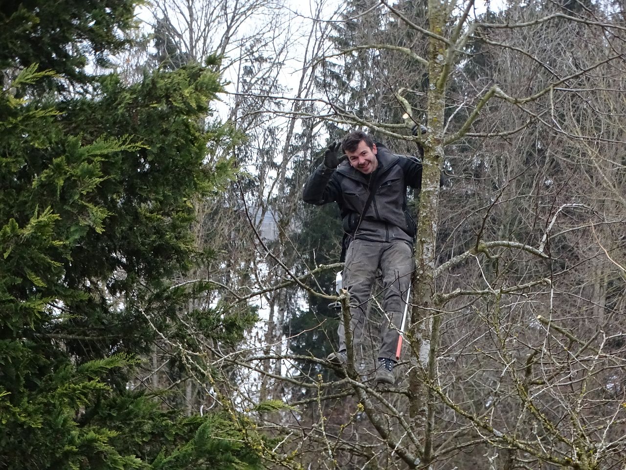 Sohn und Mitarbeiter auf dem Bauernhof und im Wald