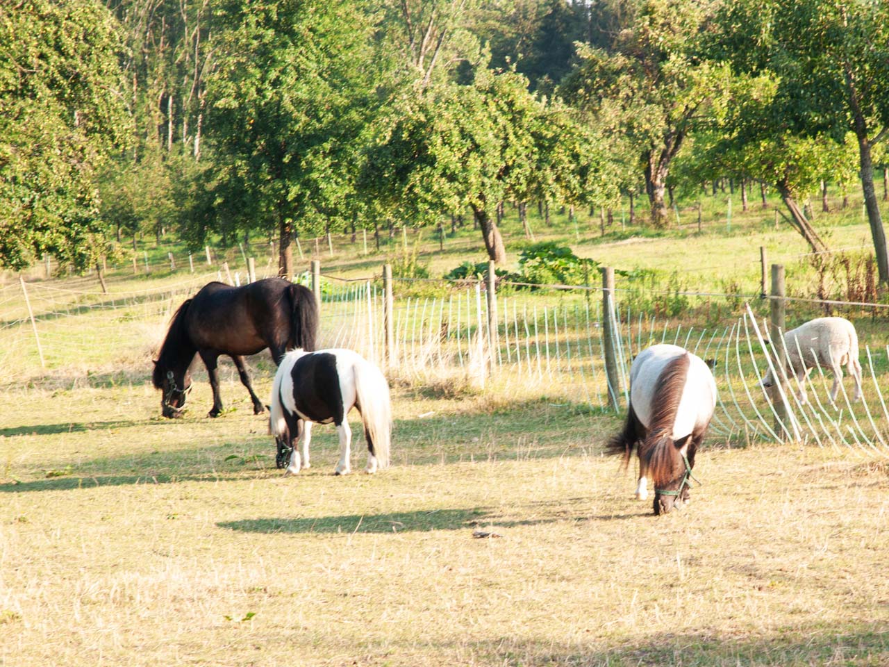 Unsere Ponys, Matschio, Peggy und Bella, freuen sich von Euch gestreichelt und gestriegelt zu werden. Mit Peggy und Bella könnt ihr sogar spazieren gehen dabei müsst ihr nur darauf achten, dass ihr sie nicht fressen lasst. Fressen dürfen sie schon den ganzen Tag auf der Weide.