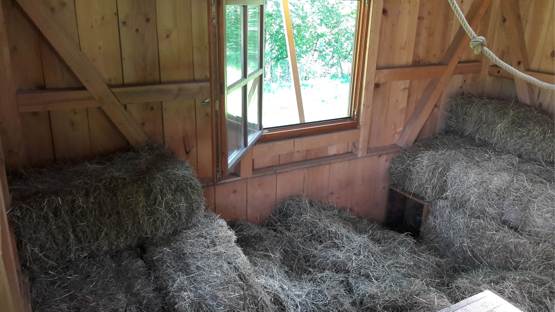 Ein Kinderbaumhaus, Rutschen, Schaukel, Sandkasten, eine Seilbahn und zeitweise sogar ein Heuhotel lädt auf unserem Hof zum Spielen und Entdecken ein. Auch ein Indianerzelt aus Ästen könnt ihr in unserem anliegenden Wald bauen.